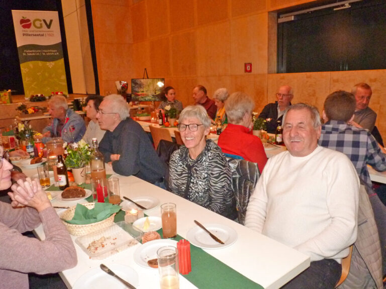 Den Abschluss des Gartenjahres bildete die Jahreshauptversammlung im November im KUSP St. Ulrich. Obmann Robert Ehrensberger begrüßte rund 84 Mitglieder sowie zahlreiche Ehrengäste, darunter Josef Stocker (Landesobmann OGV), Jakob Aufschnaiter (Bezirksobmann des OGV), Franz Wallner (Bgm. St. Jakob), sowie die Obmänner und Obfrauen der umliegenden OGVs Edi Wimmer (Unken), Martin Mair (Leogang) und Christina Grander (Waidring). Ebenfalls anwesend waren zahlreiche ehemalige Obmänner sowie der Gebietsobmann der Jungbauern im Pillerseetal, Michael Fleckl. Im Tätigkeitsbericht gab der Obmann einen Rückblick auf das vergangene Gartenjahr. Besonders hervorzuheben war die Apfelpress-Aktion, bei der trotz eines mittelmäßigen Obstjahres insgesamt 11.500 Liter Apfelsaft gepresst wurden – dies bei insgesamt 10 Pressdurchgängen. Der Abend klang mit einer Tombola und einer geselligen Jause aus.