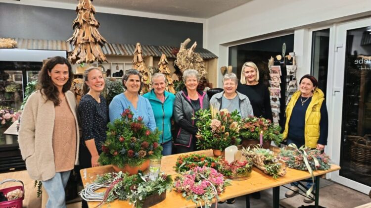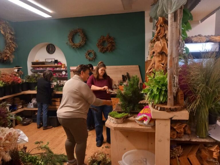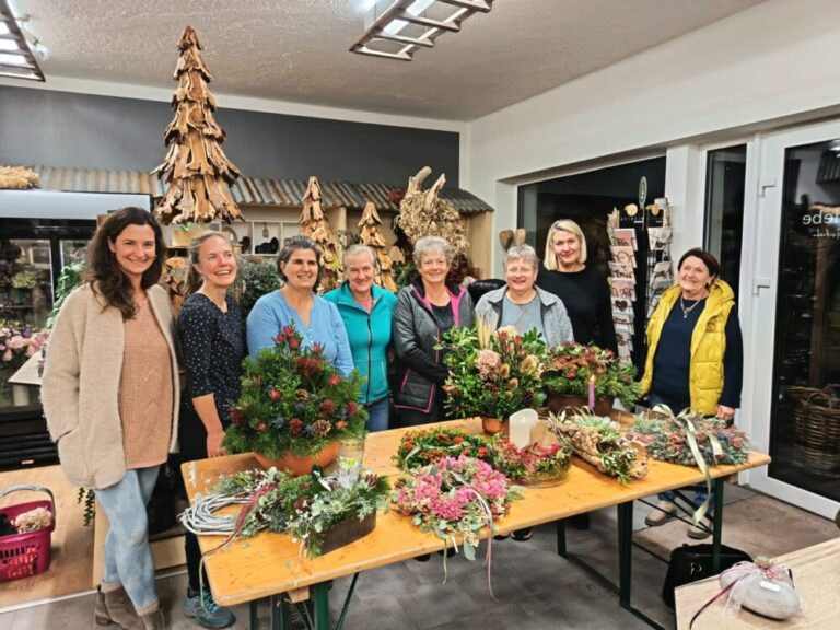 An zwei Abenden fand wieder der beliebte Workshop „Gestecke selber binden“ bei Michaela von Blütenliebe in St. Ulrich statt. Die Teilnehmerinnen konnten aus einer Vielzahl wunderschöner Materialien wählen und ihrer Kreativität freien Lauf lassen. Michaela stand wie immer mit Rat und Tat zur Seite und sorgte dafür, dass am Ende viele individuelle und liebevoll gestaltete Werkstücke entstanden.