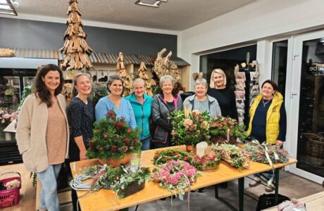 13. Oktober 2025 @ 19:00 - 20:00 - An zwei Abenden fand wieder der beliebte Workshop „Gestecke selber binden“ bei Michaela von Blütenliebe in